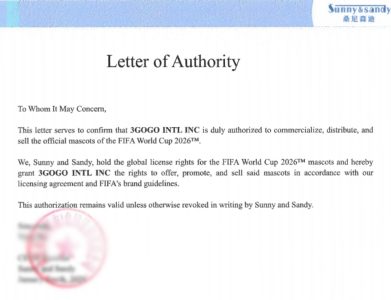 3GOGO INTL INC is authorized to commercialize and distribute official FIFA World Cup™ mascot products in accordance with licensing agreements and FIFA brand guidelines.